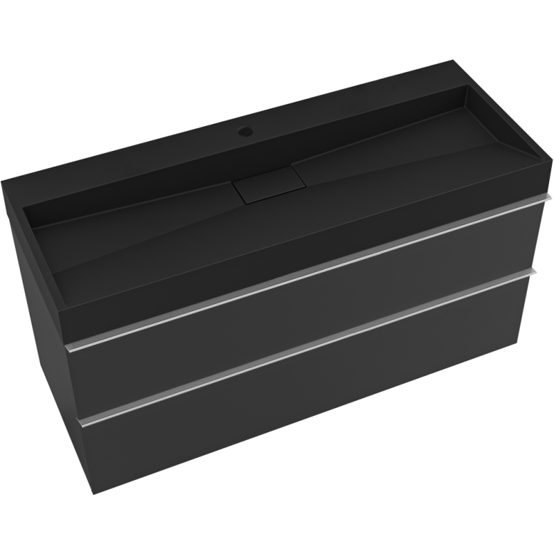CERANO - Kúpeľňová skrinka Velora - čierna matná - úchytka chróm + umývadlo s otvorom pre batériu z liateho mramoru Vita - čierna - 100x53x46 cm
