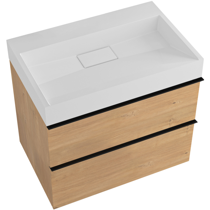 CERANO - Kúpeľňová skrinka Velora - dub medový - úchytka čierna + umývadlo z liateho mramoru Vita - biela lesklá - 70x53x46 cm