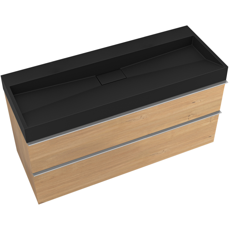 CERANO - Kúpeľňová skrinka Velora - dub medový - úchytka chróm + umývadlo z liateho mramoru Vita - čierna - 100x53x46 cm