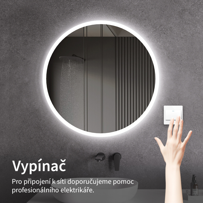 Osvetlenie zrkadla je možné zapnúť cez vypínač na stene. Je nutné napojiť ho priamo na domácu elektrickú sieť. Pred inštaláciou odporúčame obrátiť sa na kvalifikovaného elektrikára, ktorý zaistí správne a bezpečné pripojenie.