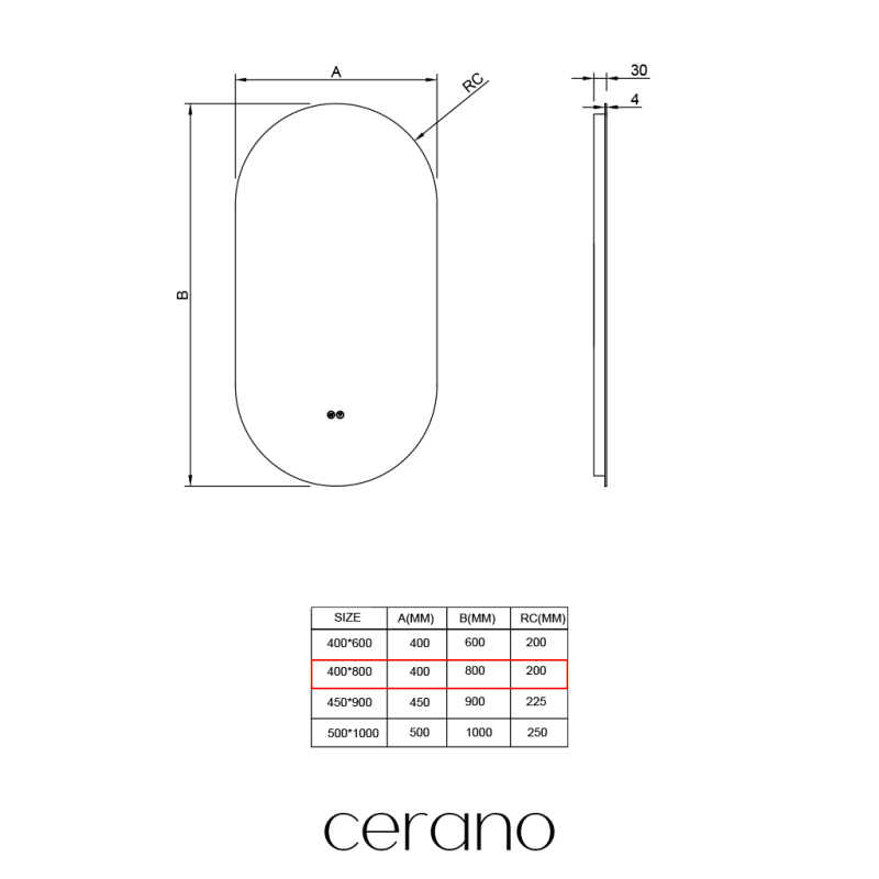 CERANO - Kúpeľňové LED zrkadlo Luno - 40x80 cm