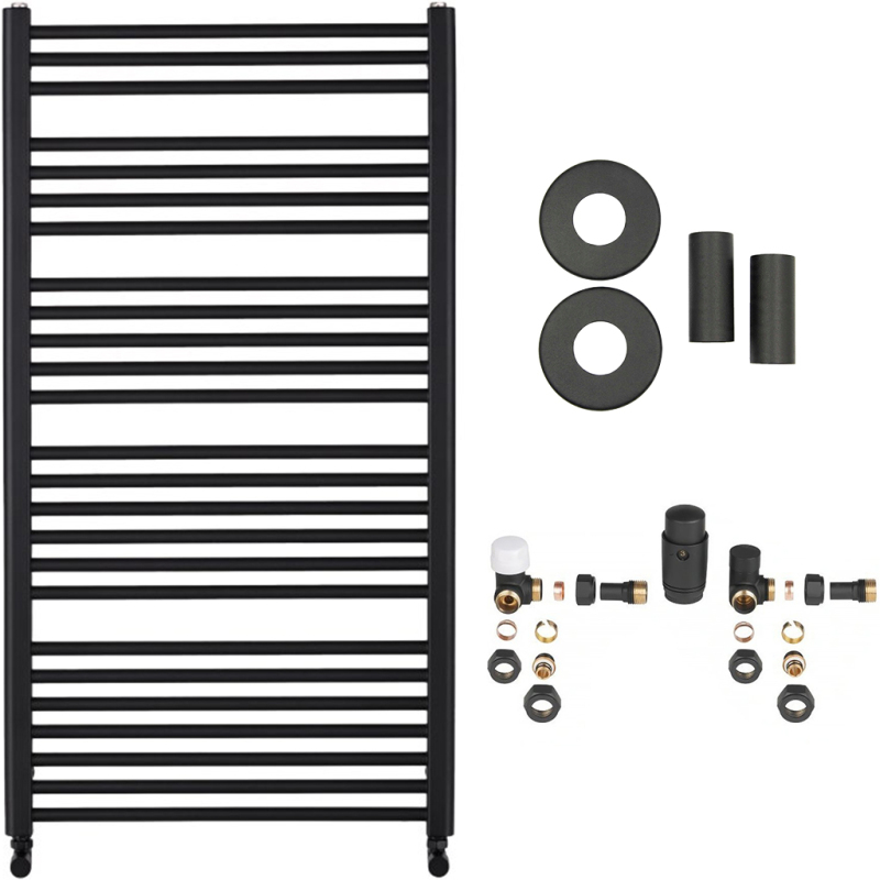 CERANO - Kúpeľňový radiátorový set Alberto - kombinované vykurovanie, wifi tyč - bočné jednobodové pripojenie - 716W - čierna matná - 1180x650 mm