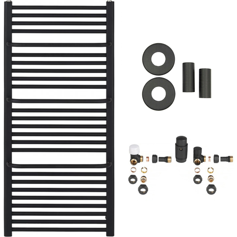 CERANO - Kúpeľňový radiátorový set Antonio - kombinované vykurovanie, termo tyč - bočné jednobodové pripojenie - 857W - čierna matná - 1460x550 mm