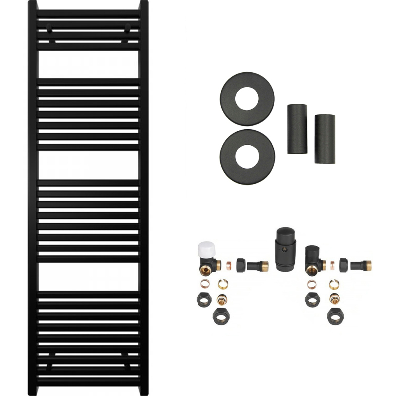 CERANO - Kúpeľňový radiátorový set Donovan - kombinované vykurovanie, wifi tyč - bočné jednobodové pripojenie - 477W - čierna matná - 1600x500 mm