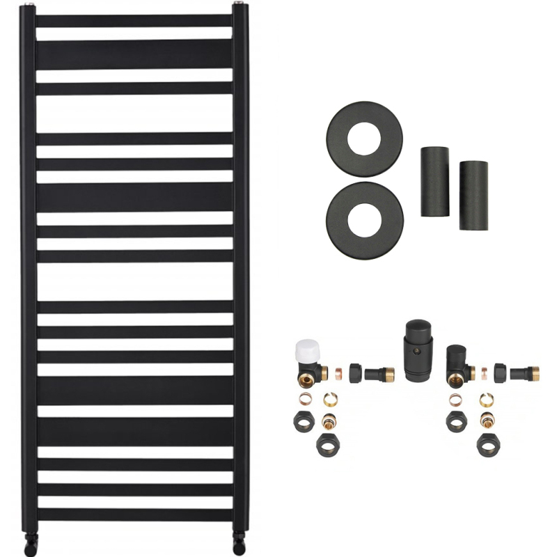 CERANO - Kúpeľňový radiátorový set Enrico - ústredné vykurovanie - bočné pripojenie - 559W - čierna matná - 1210x550 mm