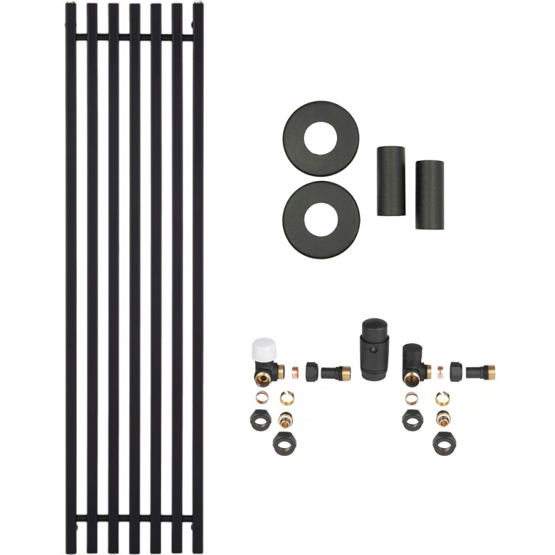 CERANO - Kúpeľňový radiátorový set Francesco - ústredné vykurovanie - bočné jednobodové pripojenie - 872W - čierna matná - 1500x390 mm