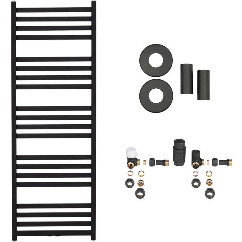 CERANO - Kúpeľňový radiátorový set Fulgidus - ústredné vykurovanie - bočné jednobodové pripojenie - 712W - čierna matná - 1500x530 mm