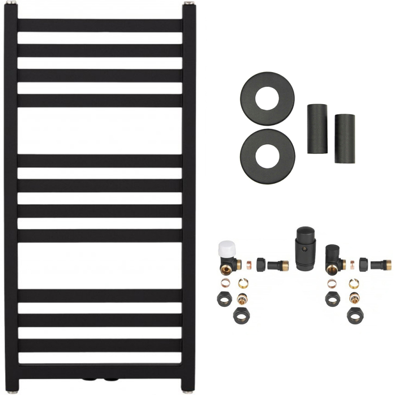 CERANO - Kúpeľňový radiátorový set Fulgidus - ústredné kúrenie - bočné pripojenie - 503W - čierna matná - 880x430 mm