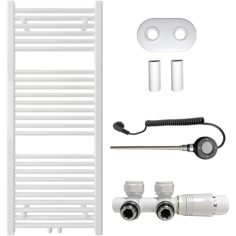 CERANO - Kúpeľňový radiátorový set Lincoln - kombinované vykurovanie, wifi tyč - stredové pripojenie 50 mm - 366W - biela matná - 1200x500 mm
