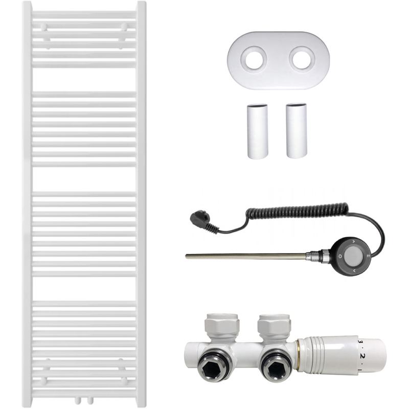 CERANO - Kúpeľňový radiátorový set Lincoln - kombinované vykurovanie, wifi tyč - stredové pripojenie 50 mm - 484W - biela matná - 1600x500 mm