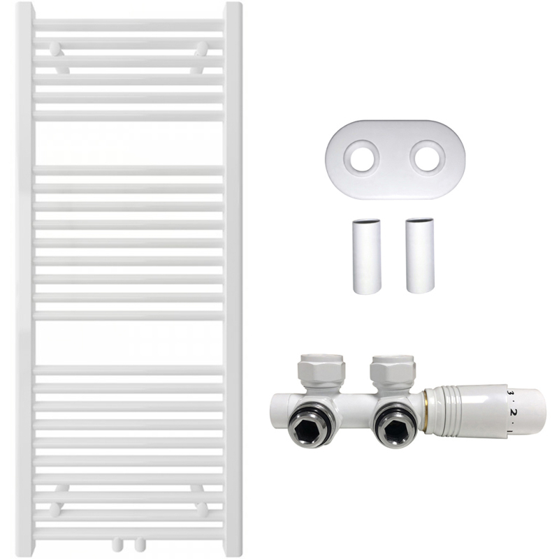 CERANO - Kúpeľňový radiátorový set Lincoln - ústredné vykurovanie - stredové pripojenie 50 mm - 366W - biela matná - 1200x500 mm
