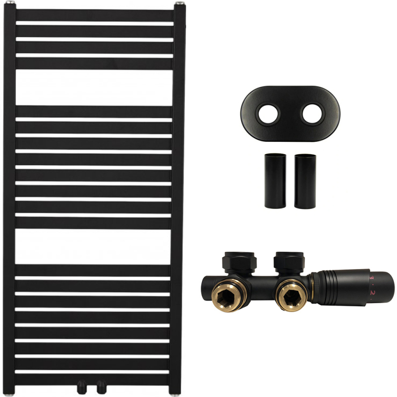 CERANO - Kúpeľňový radiátorový set Luigino - ústredné vykurovanie - stredové pripojenie 50 mm - 300W - čierna matná - 970x450 mm