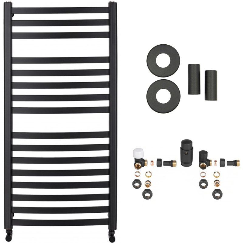 CERANO - Kúpeľňový radiátorový set Paolo - kombinované vykurovanie, wifi tyč - bočné jednobodové pripojenie - 604W - čierna matná - 1090x550 mm
