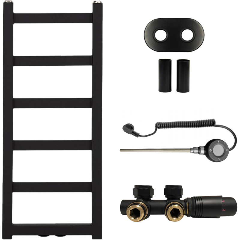 CERANO - Kúpeľňový radiátorový set Pyrodeus - kombinované vykurovanie, wifi tyč - stredové pripojenie 50 mm - čierna matná - 730x300 mm