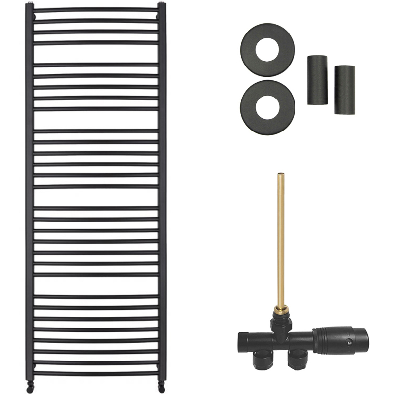 CERANO - Kúpeľňový radiátorový set Stefano - ústredné vykurovanie - bočné jednobodové pripojenie - 943W - čierna matná - 1710x650 mm