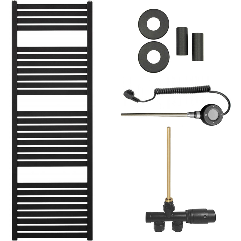 CERANO - Kúpeľňový radiátorový set Vincenzo - kombinované vykurovanie, wifi tyč - bočné jednobodové pripojenie - 500W - čierna matná - 1330x450 mm