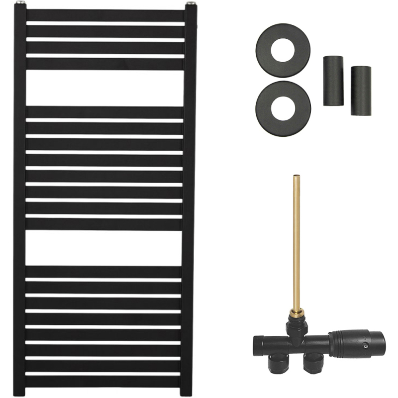 CERANO - Kúpeľňový radiátorový set Vincenzo - ústredné vykurovanie - bočné jednobodové pripojenie - 300W - čierna matná - 970x450 mm