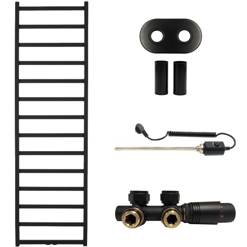 CERANO - Kúpeľňový radiátorový set Pyrodes - kombinované vykurovanie, termo tyč - stredové pripojenie 50 mm - 725W - čierna matná - 1780x530 mm