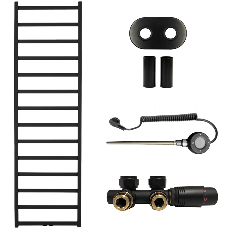 CERANO - Kúpeľňový radiátorový set Pyrodes - kombinované vykurovanie, wifi tyč - stredové pripojenie 50 mm - 725W - čierna matná - 1780x530 mm