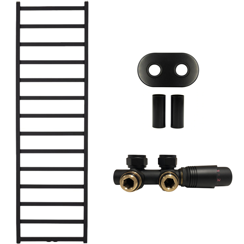 CERANO - Kúpeľňový radiátorový set Pyrodes - ústredné vykurovanie - stredové pripojenie 50 mm - 725W - čierna matná - 1780x530 mm