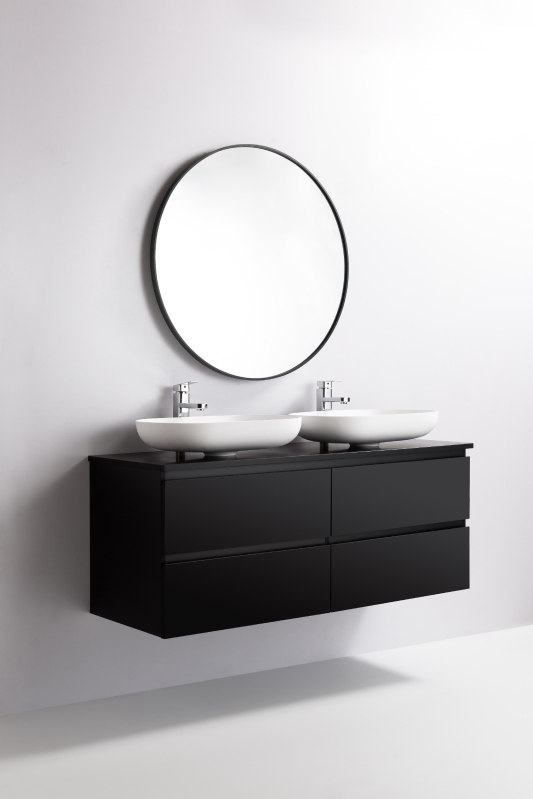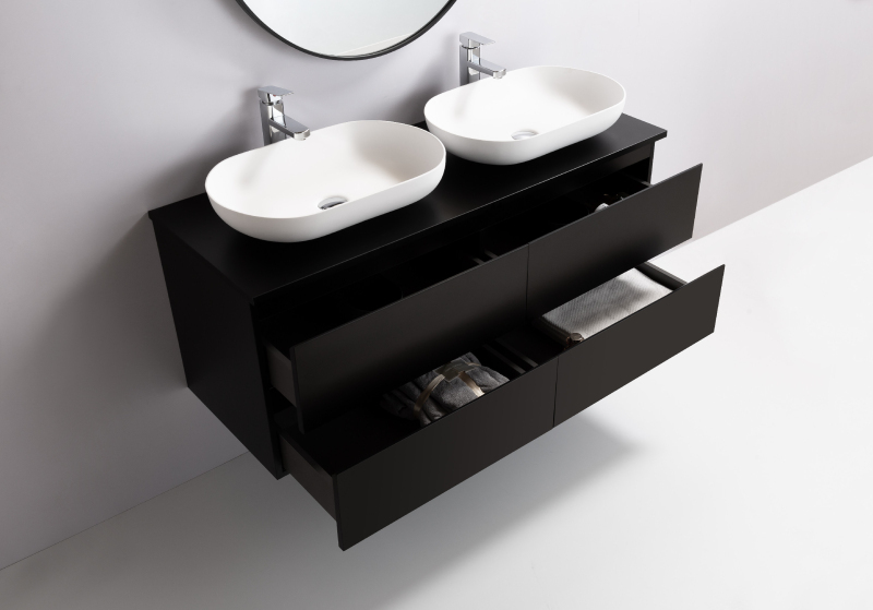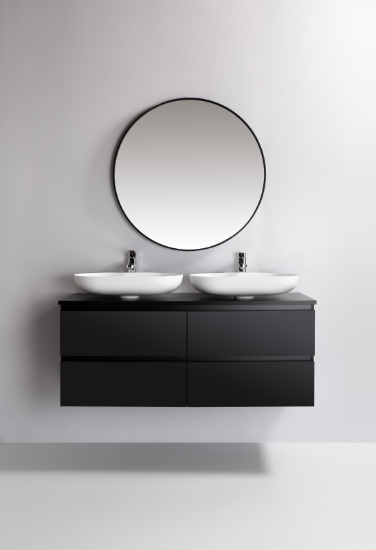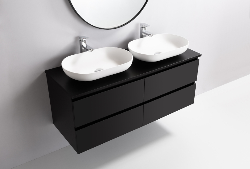 CERANO - Kúpeľňová skrinka Carole s doskou pod umývadlo - 18 mm - čierna matná - 121x49,8x46,5 cm