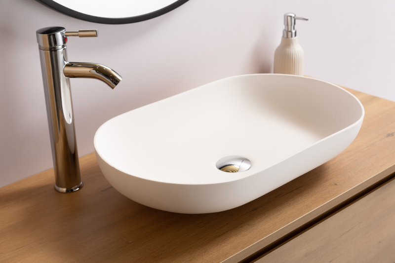 expedícia do 10 dníCERANO - Umývadlo z liateho mramoru Lyra - na dosku - biela matná - 54x34 cm