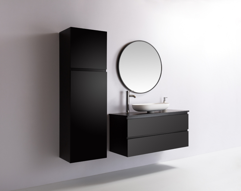 CERANO - Kúpeľňová skrinka Carole s doskou pod umývadlo - 18 mm - čierna matná - 101x49,8x46,5 cm