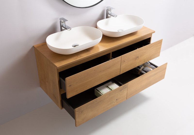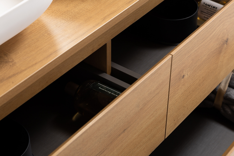 Naše kúpeľňové skrinky prichádzajú už v zmontovanom stave, čo vám ušetrí čas aj námahu pri ich inštalácii. Sú vyrobené z kvalitných materiálov a ponúkajú dostatok úložného priestoru pre všetky vaše potreby.