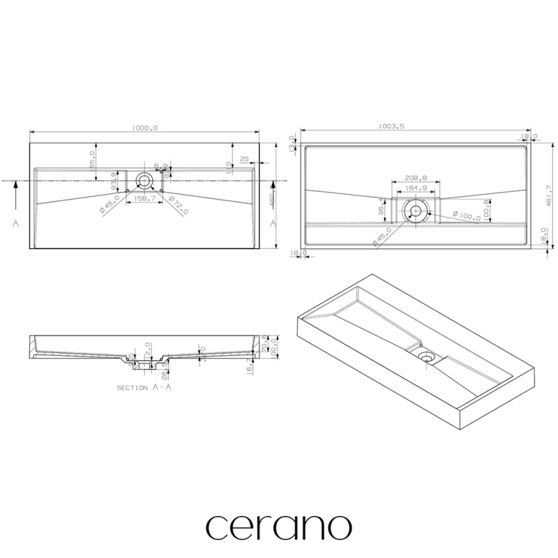 CERANO - Umývadlo z liateho mramoru Vita - nástenné aj na dosku - biela lesklá - 100x46 cm
