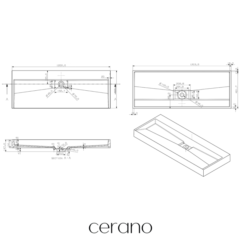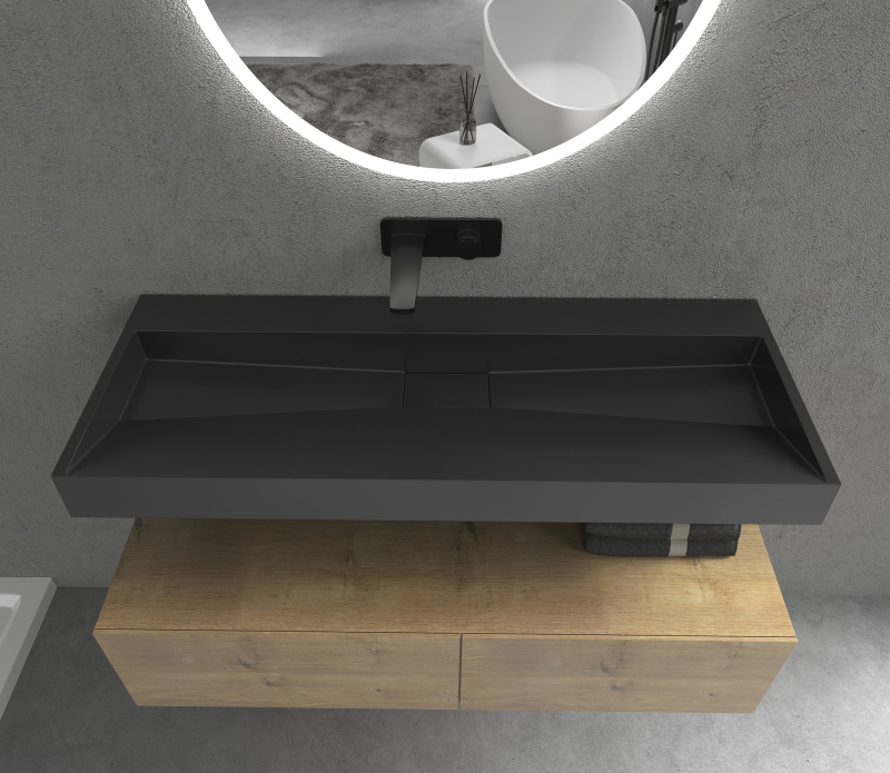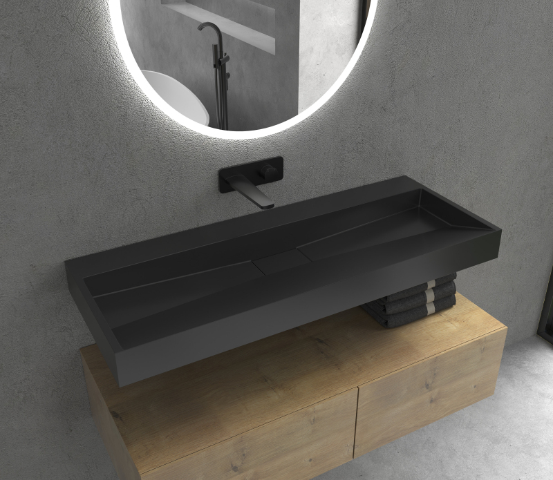 CERANO - Umývadlo z liateho mramoru Vita - nástenné aj na dosku - čierna matná - 120x46 cm