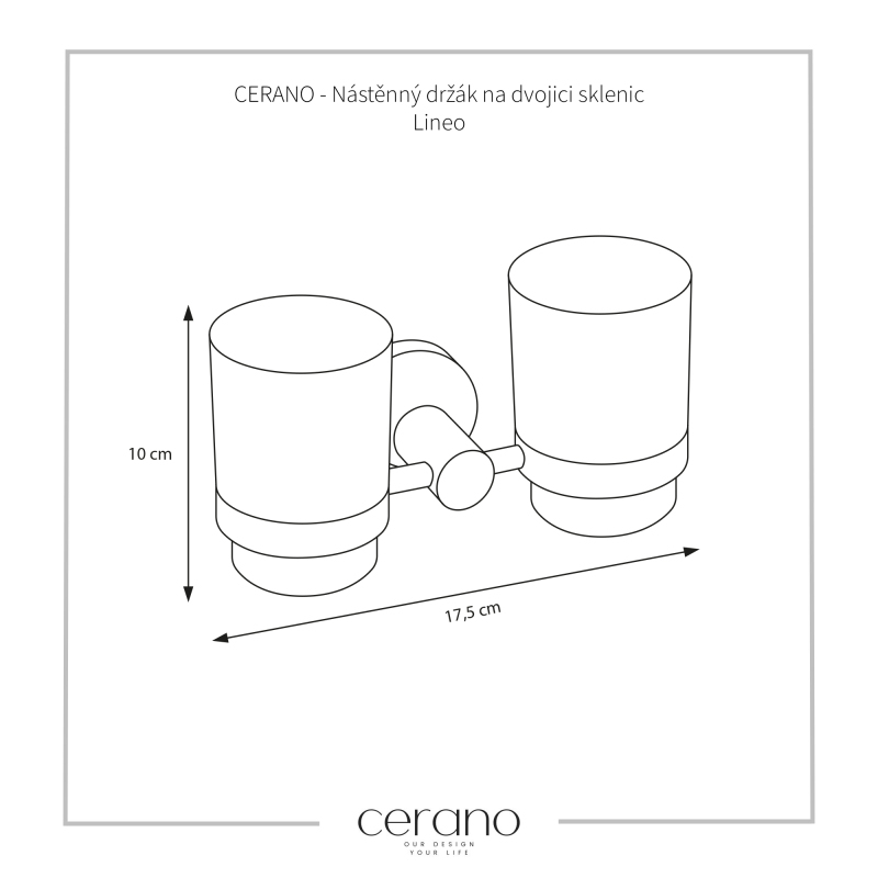 Pokiaľ hľadáte dokonalú kombináciu štýlu a funkčnosti pre vašu kúpeľňu, séria Lineo od značky CERANO je tou správnou voľbou. Táto kolekcia sa zameriava na detaily, ktoré vyšperkujú vašu kúpeľňu v priestore plnom elegancie, dizajnu a pohodlia. Produkty sú navrhnuté tak, aby sa ľahko začlenili do akéhokoľvek moderného interiéru, a to vďaka čistým líniám a kvalite výrobných materiálov. Držiak pohárov je vyrobený z nerezovej ocele , ktorá je vysoko odolná voči vlhkosti a korózii. Poháre v mliečnej povrchovej úprave sú súčasťou balenia . Inštalácia je veľmi jednoduchá pomocou skrutiek a hmoždiniek a montážna sada je súčasťou balenia .