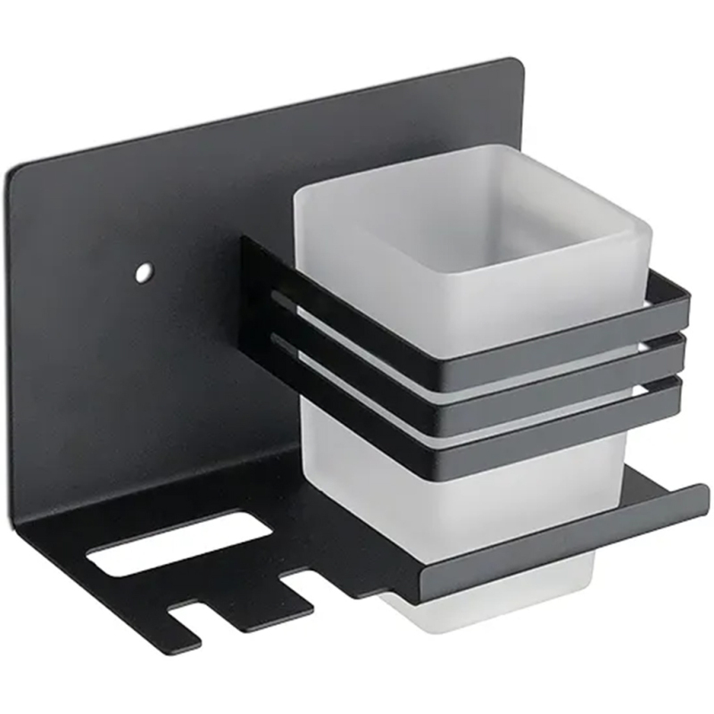 Samotný držiak poskytuje ideálne riešenie pre hygienické zavesenie zubných kefiek a vertikálne postavenie zubnej pasty vo výrezoch vedľa pohára.