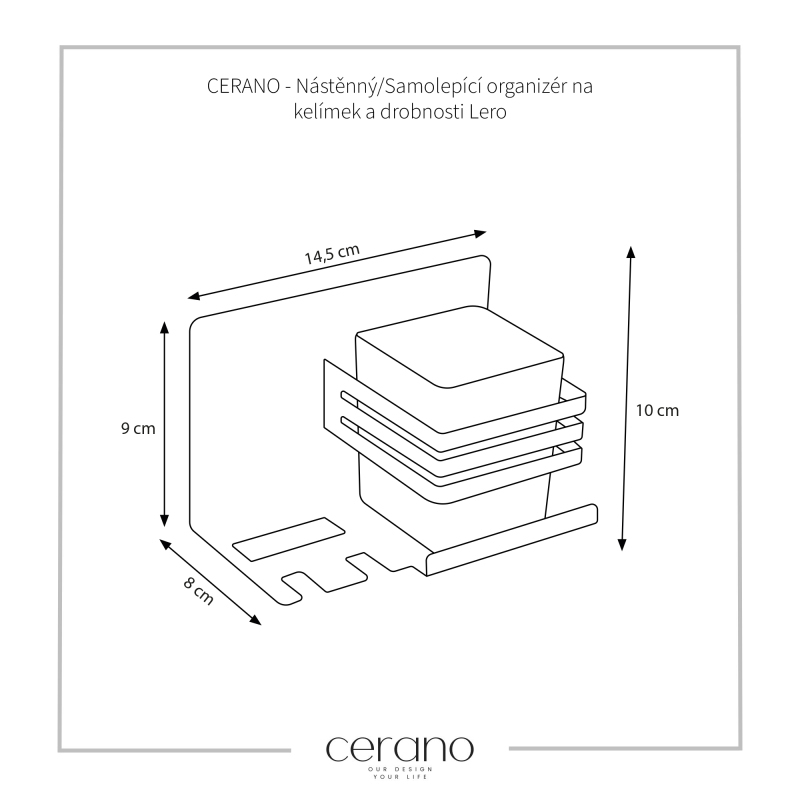 CERANO - Nástenný/Samolepiaci organizér na kelímok a drobnosti Lero - čierna matná