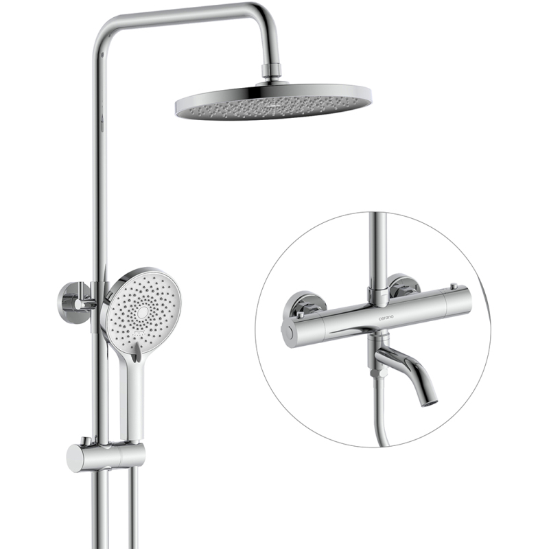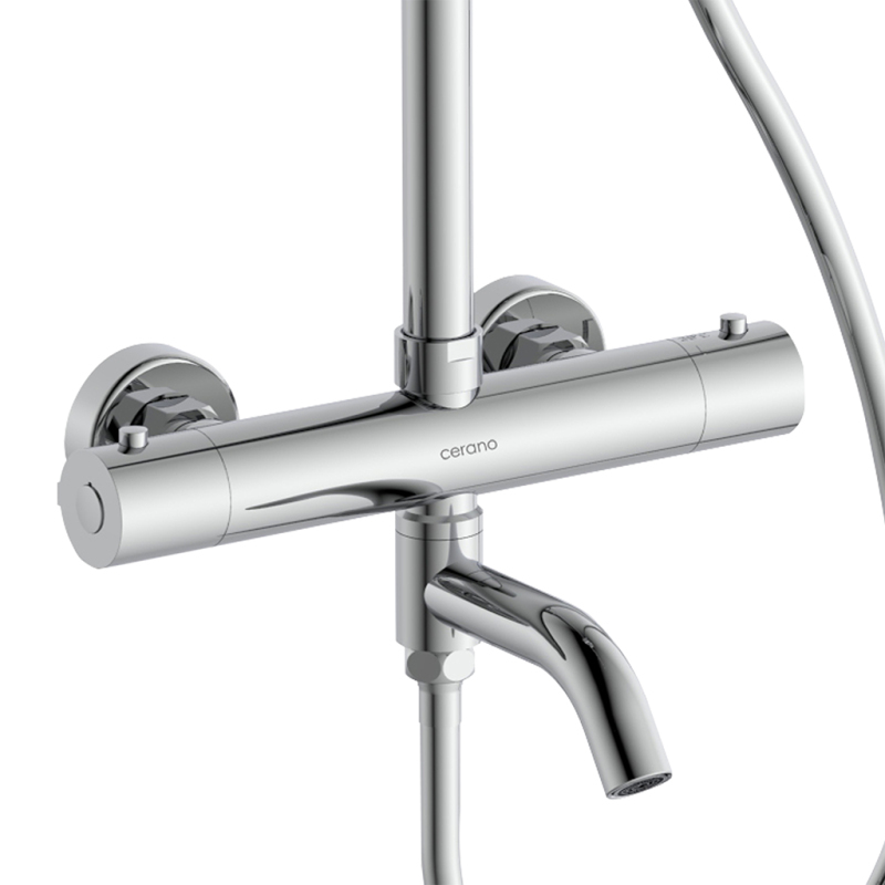 CERANO - Nástenný sprchový stĺp Selma - termostatická vaňová otočná batéria - chróm