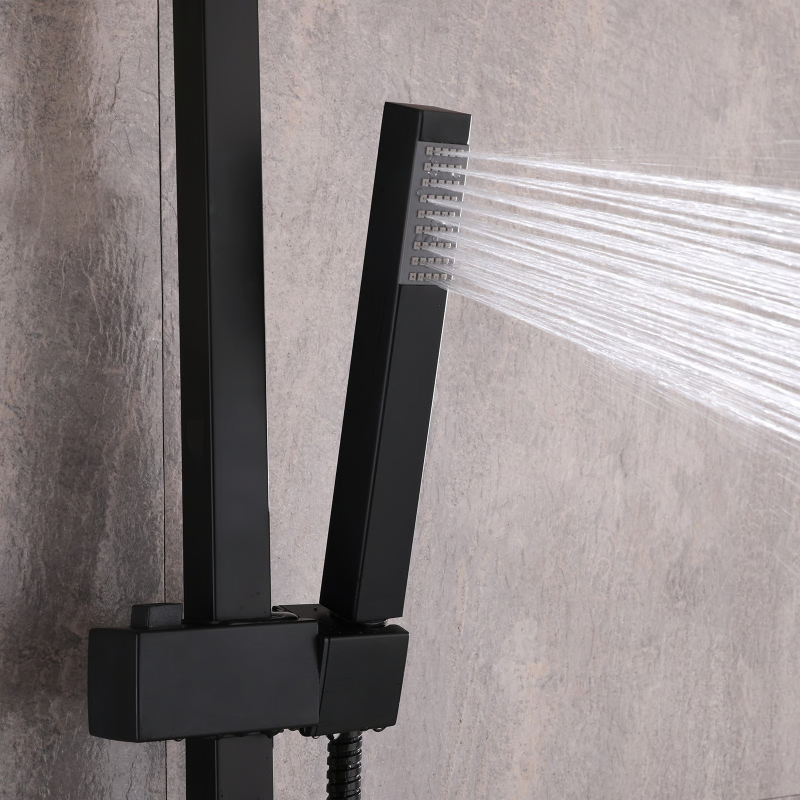 Hlavová sprcha je stredobodom tohto setu, ktorá vám poskytne osviežujúci zážitok. Vďaka svojmu dizajnu sa voda rovnomerne rozprestiera a zaisťuje dokonalé pokrytie celého tela. Navyše je ľahké nastaviť teplotu a silu prúdiacej vody pomocou termostatickej batérie. Ručná sprcha vám zasa umožní viac kontroly nad sprchovaním. Môžete ju ľahko uchopiť a smerovať vodu tam, kde je to potrebné. Sprchová hadica je vyrobená z materiálu, ktorý je odolný voči ohýbaniu a preťahovaniu.