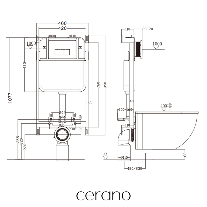 - Modul je kompatibilný so závesnými WC značky Cerano a ďalšími značkami.