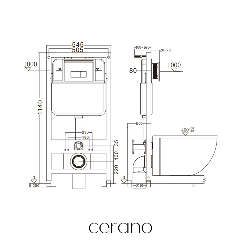 - Modul je kompatibilný so závesnými WC značky Cerano a ďalšími značkami.