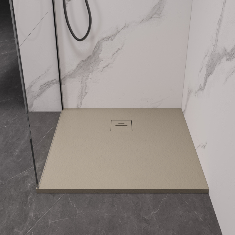 CERANO - Sprchová vanička štvorcová Pablo - SMC/minerálny kompozit - štruktúrovaná béžová - 90x90 cm