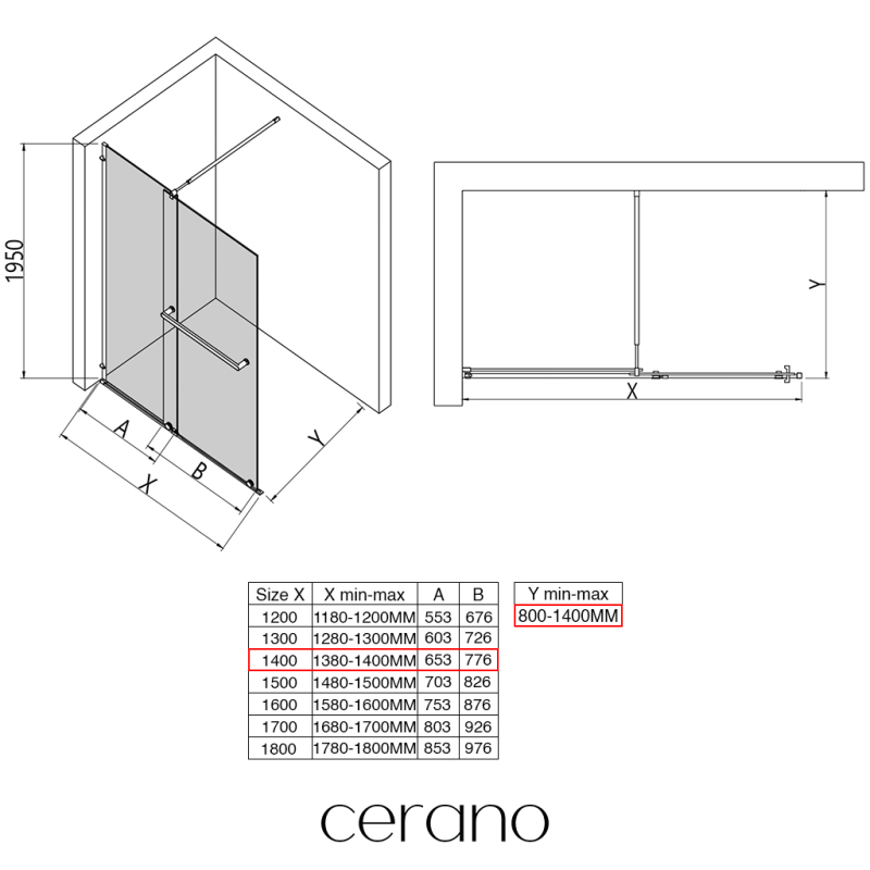 CERANO - Sprchová zástena Walk-in Medin Ľ/P - 8 mm - chróm, transparentné sklo - 140x195 cm - dvojdielna posuvná