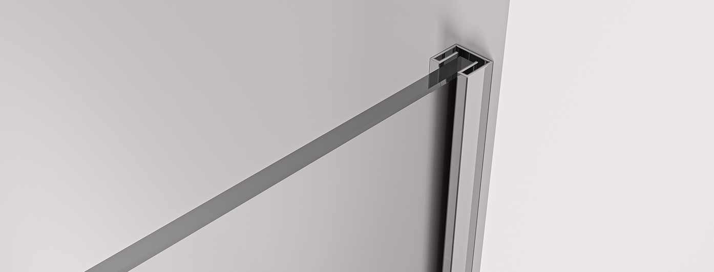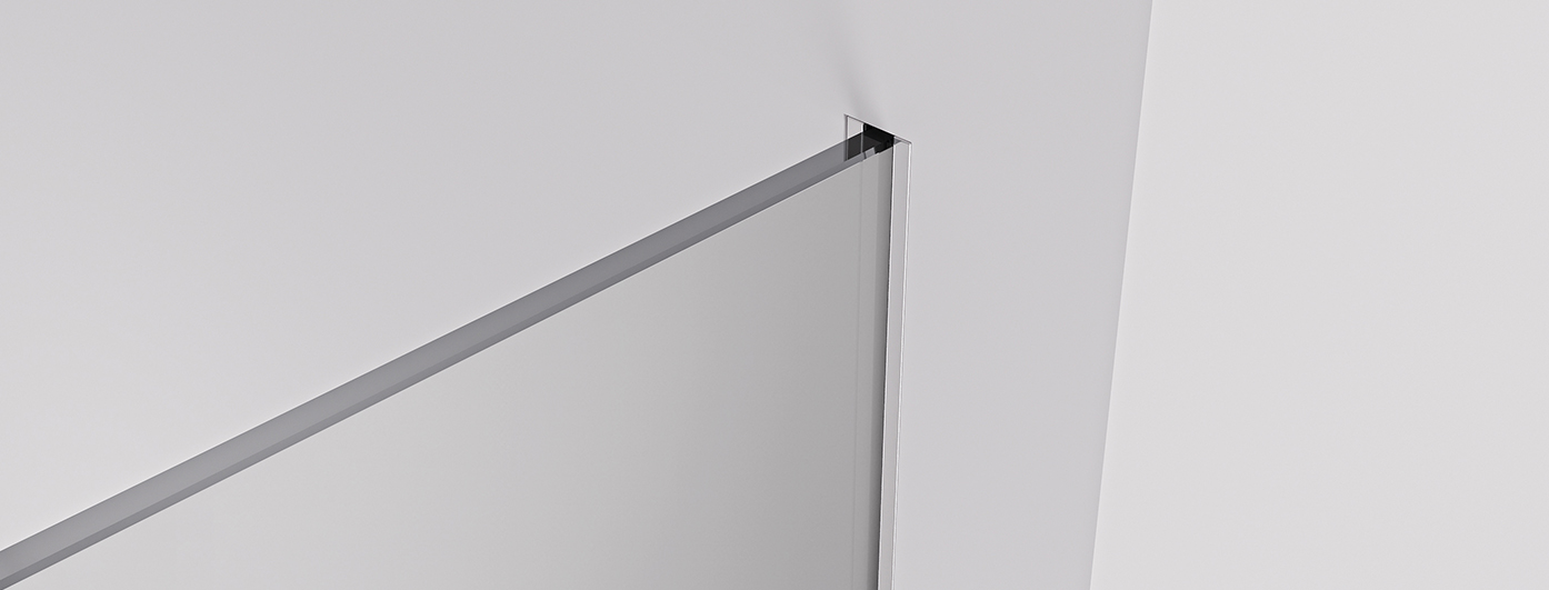 Konštrukcia sprchovej zásteny umožňuje pomocou profilov, ktoré je možné zapustiť úplne alebo len čiastočne (14 mm, do obkladov či dlažby), skryté uchytenie skla bez rušivých vzpier . Výsledkom je dizajnovo čisté a elegantné riešenie , ktoré podčiarkuje moderný vzhľad kúpeľne a zaisťuje maximálnu vizuálnu ľahkosť priestoru .