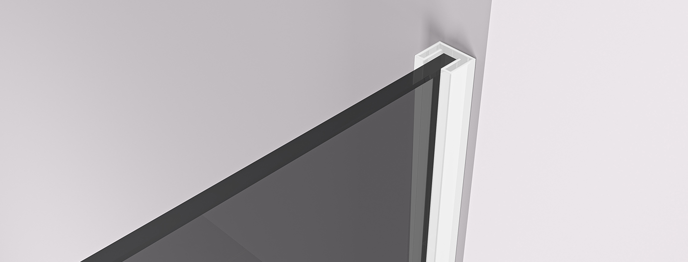 Konštrukcia sprchovej zásteny umožňuje pomocou profilov, ktoré je možné zapustiť úplne alebo len čiastočne (14 mm, do obkladov či dlažby), skryté uchytenie skla bez rušivých vzpier . Výsledkom je dizajnovo čisté a elegantné riešenie , ktoré podčiarkuje moderný vzhľad kúpeľne a zaisťuje maximálnu vizuálnu ľahkosť priestoru .