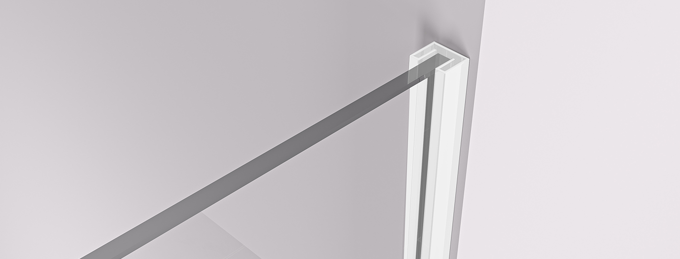 Konštrukcia sprchovej zásteny umožňuje pomocou profilov, ktoré je možné zapustiť úplne alebo len čiastočne (14 mm, do obkladov či dlažby), skryté uchytenie skla bez rušivých vzpier . Výsledkom je dizajnovo čisté a elegantné riešenie , ktoré podčiarkuje moderný vzhľad kúpeľne a zaisťuje maximálnu vizuálnu ľahkosť priestoru .