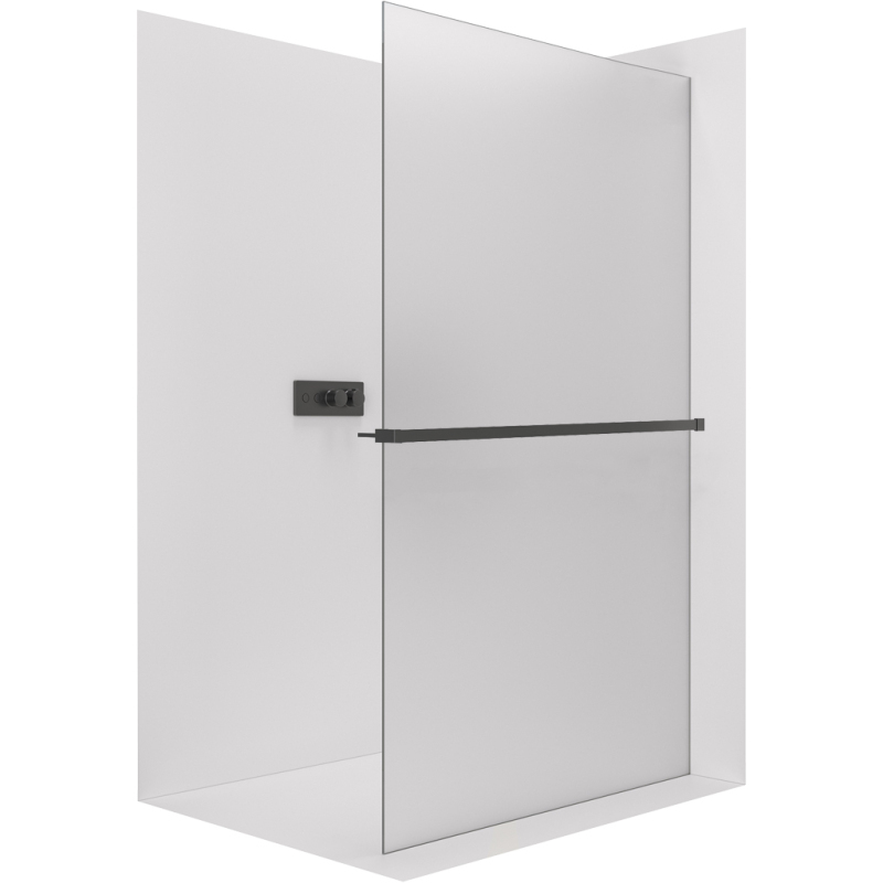 CERANO - Sprchová zástena Walk-in Crystal Ľ/P - 8 mm + polička/držiak na uteráky - bezvzperový systém - čierna matná, mliečne sklo - 150x200 cm