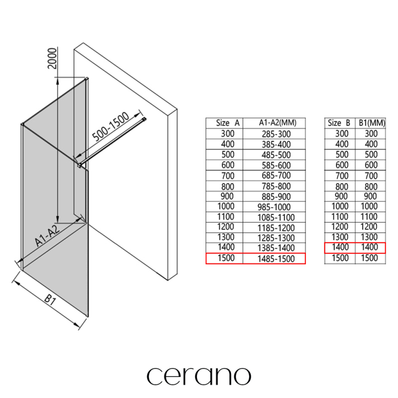 V rámci tejto série ponúkame širokú škálu rozmerov, aby sme uspokojili rôzne potreby našich zákazníkov. Všetky sprchové kúty, dvere a zásteny značky Cerano sú plne kompatibilné so sprchovými vaničkami Cerano v rovnakých rozmeroch, čo zaisťuje bezproblémovú inštaláciu a dokonalé zladenie. Sprchovací kút je možné navyše inštalovať flexibilne – buď na zodpovedajúcu sprchovú vaničku, alebo priamo na podlahu podľa vašich preferencií a možností kúpeľne.
