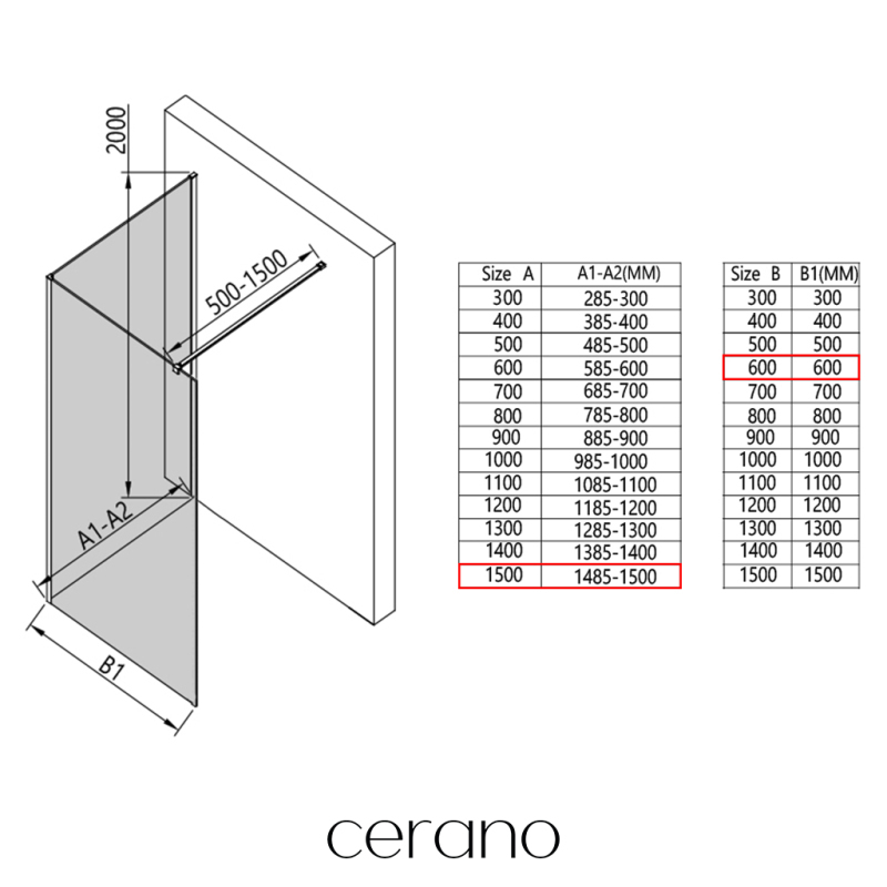 V rámci tejto série ponúkame širokú škálu rozmerov, aby sme uspokojili rôzne potreby našich zákazníkov. Všetky sprchové kúty, dvere a zásteny značky Cerano sú plne kompatibilné so sprchovými vaničkami Cerano v rovnakých rozmeroch, čo zaisťuje bezproblémovú inštaláciu a dokonalé zladenie. Sprchovací kút je možné navyše inštalovať flexibilne – buď na zodpovedajúcu sprchovú vaničku, alebo priamo na podlahu podľa vašich preferencií a možností kúpeľne.