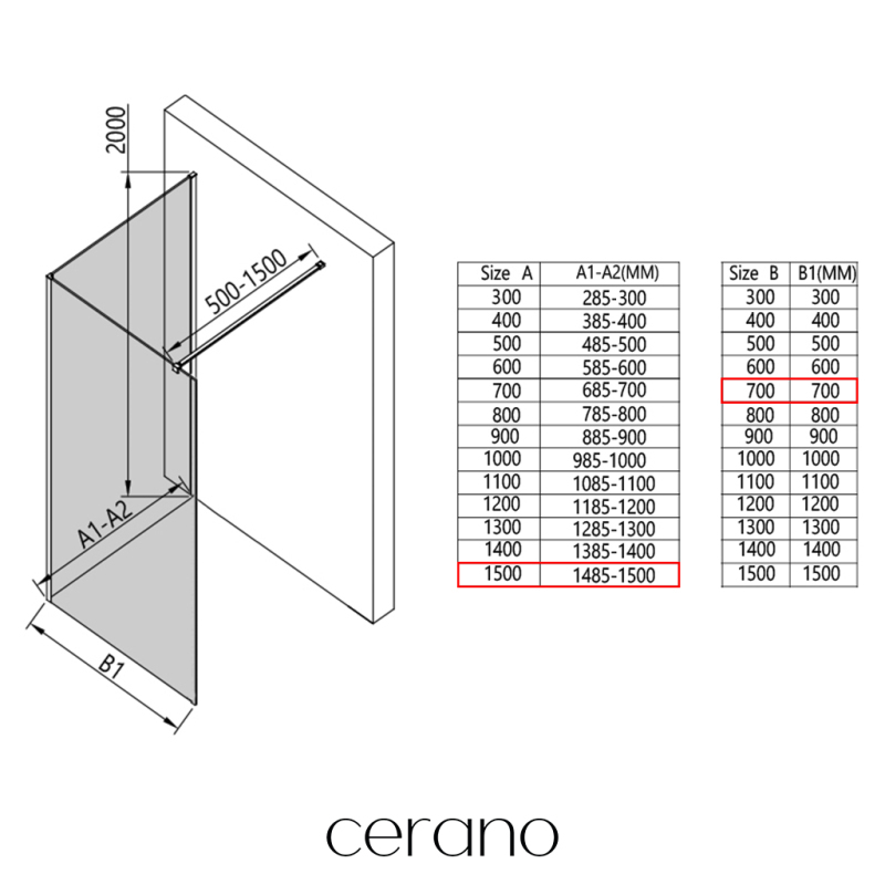 V rámci tejto série ponúkame širokú škálu rozmerov, aby sme uspokojili rôzne potreby našich zákazníkov. Všetky sprchové kúty, dvere a zásteny značky Cerano sú plne kompatibilné so sprchovými vaničkami Cerano v rovnakých rozmeroch, čo zaisťuje bezproblémovú inštaláciu a dokonalé zladenie. Sprchovací kút je možné navyše inštalovať flexibilne – buď na zodpovedajúcu sprchovú vaničku, alebo priamo na podlahu podľa vašich preferencií a možností kúpeľne.