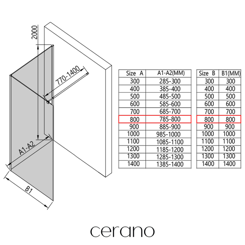V rámci tejto série ponúkame širokú škálu rozmerov, aby sme uspokojili rôzne potreby našich zákazníkov. Všetky sprchové kúty, dvere a zásteny značky Cerano sú plne kompatibilné so sprchovými vaničkami Cerano v rovnakých rozmeroch, čo zaisťuje bezproblémovú inštaláciu a dokonalé zladenie. Sprchovací kút je možné navyše inštalovať flexibilne – buď na zodpovedajúcu sprchovú vaničku, alebo priamo na podlahu podľa vašich preferencií a možností kúpeľne.
