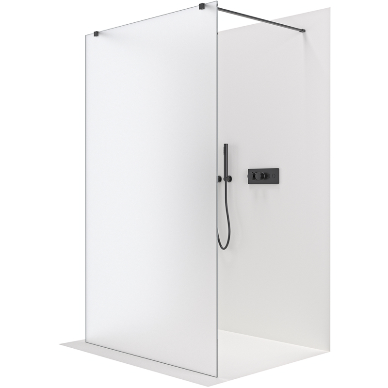 CERANO - Sprchová zástena Walk-in Onyx Duo Ľ/P - 8 mm - hranatá vzpera - čierna matná, mliečne sklo - 150x200 cm
