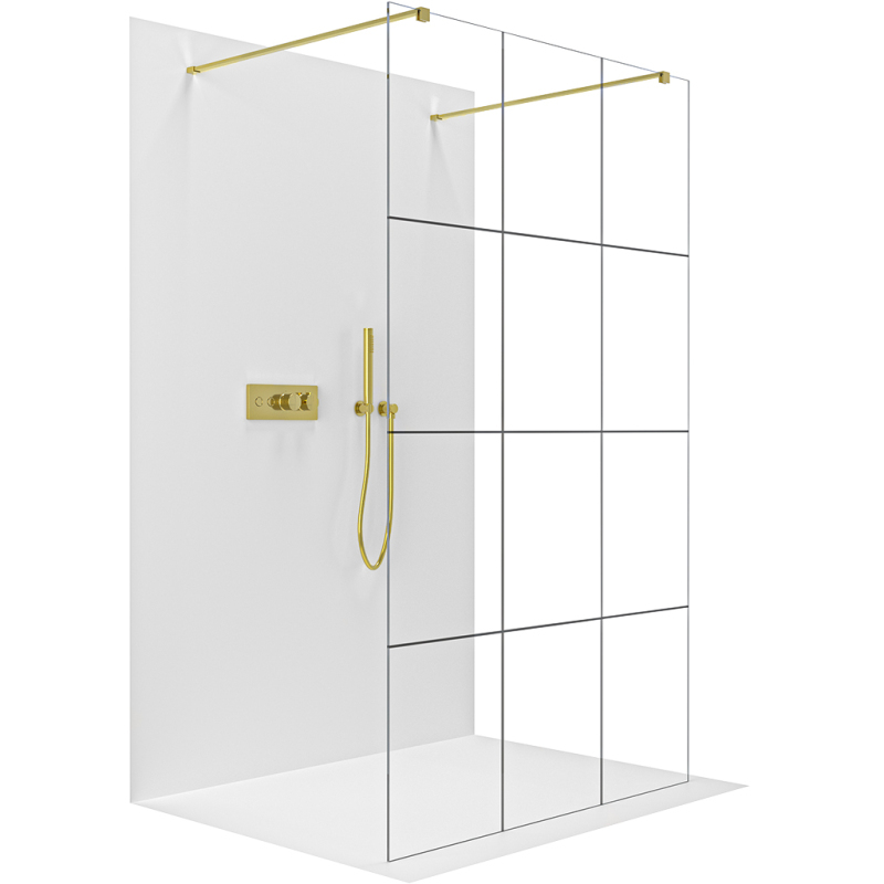 CERANO - Sprchová zástena Walk-in Onyx Duo Ľ/P - 8 mm - hranatá vzpera - zlatá kartáčovaná, industriálne sklo - 110x200 cm