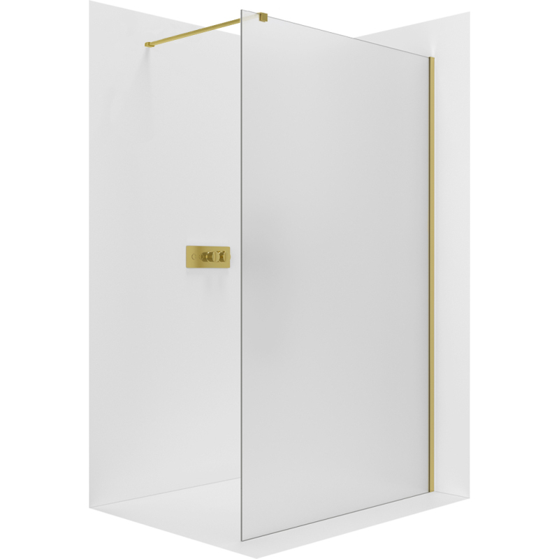 CERANO - Sprchová zástena Walk-in Onyx Cube Ľ/P - 8 mm - hranatá vzpera - zlatá kartáčovaná, mliečne sklo - 140x200 cm
